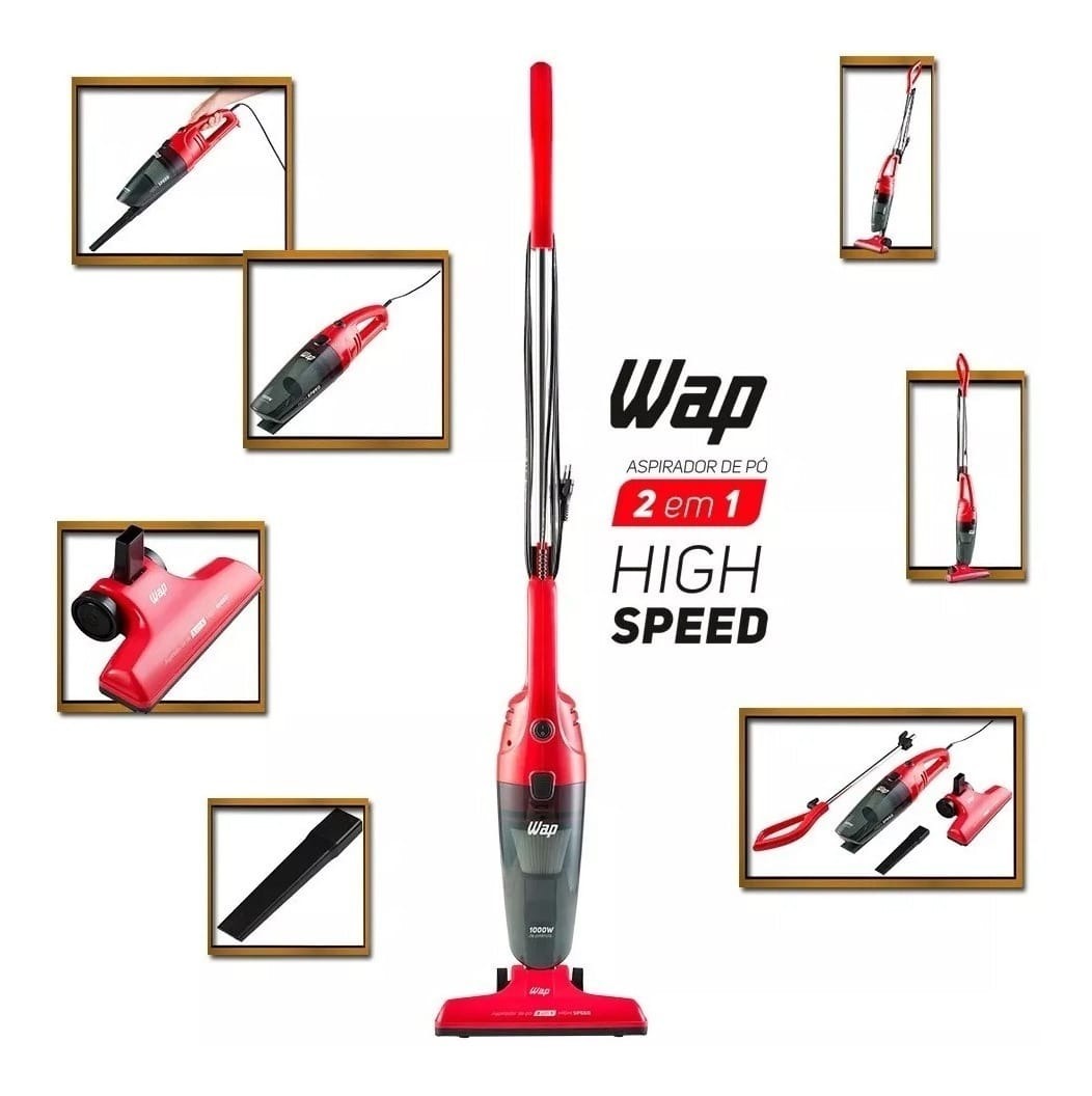 Aspirador de Pó Vertical 2 em 1 WAP 1000W Vermelho com Preto High Speed 110V
