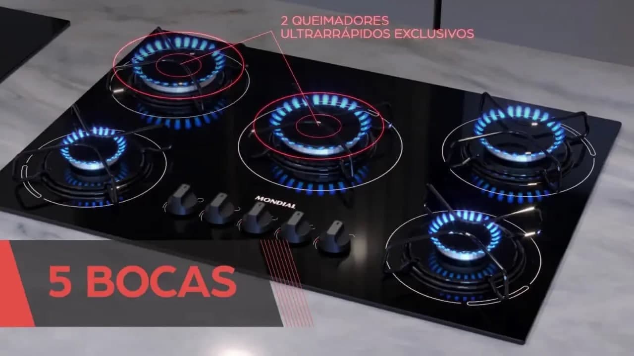 Cooktop a Gás Mondial, 5 Bocas, Bivolt, Preto/Inox