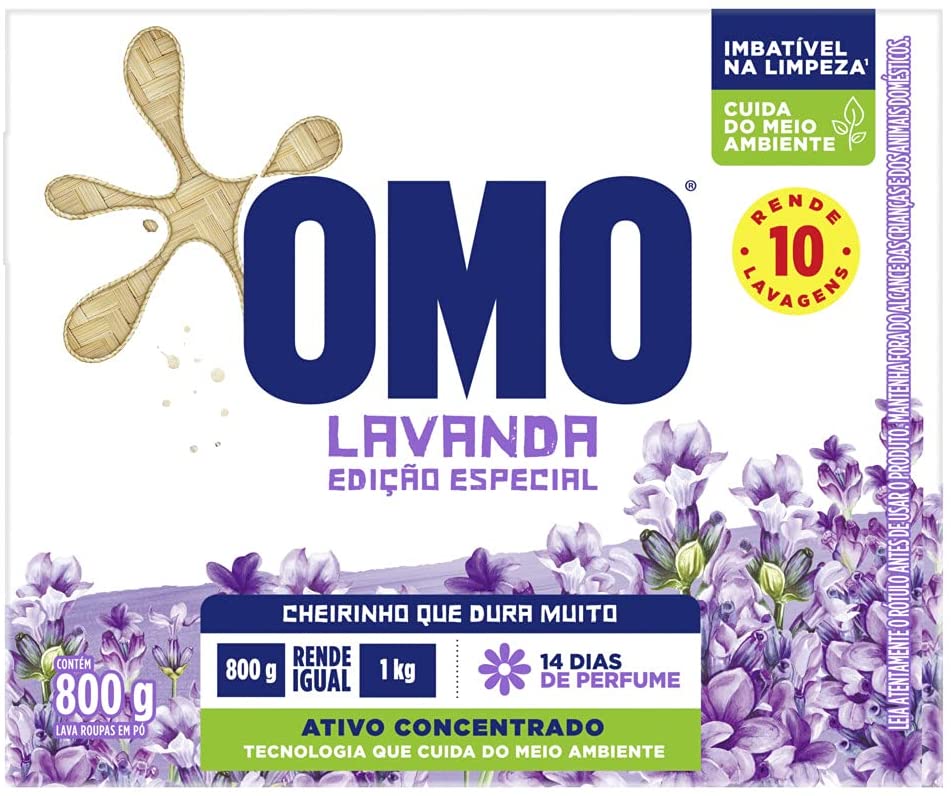 Lava-Roupas em Pó com Ativo Concentrado Lavanda Omo Caixa 800g Edição Especial, OMO