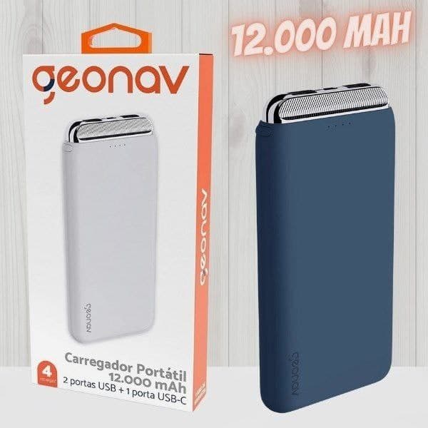 Carregador Portátil 12.000 mAh, Marinho, PB12KMB, Geonav