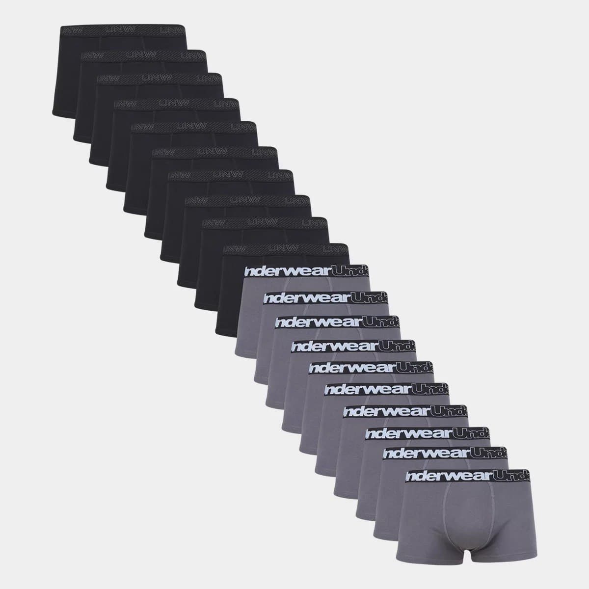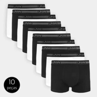 Kit Cuecas Boxer UNW Elástico 20 Peças – Cinza+Preto