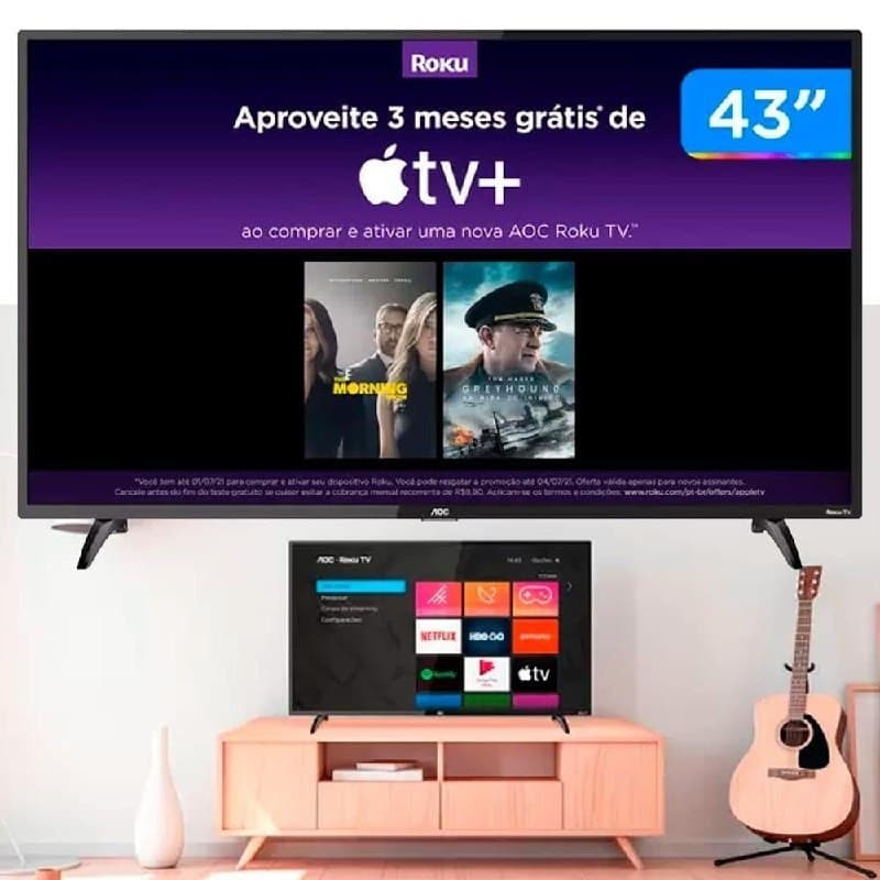 Smart TV LED 43″ Full HD AOC ROKU TV FHD 43S5195/78G, Wi-Fi, 3 HDMI, 1 USB, Wifi, Conversor Digital