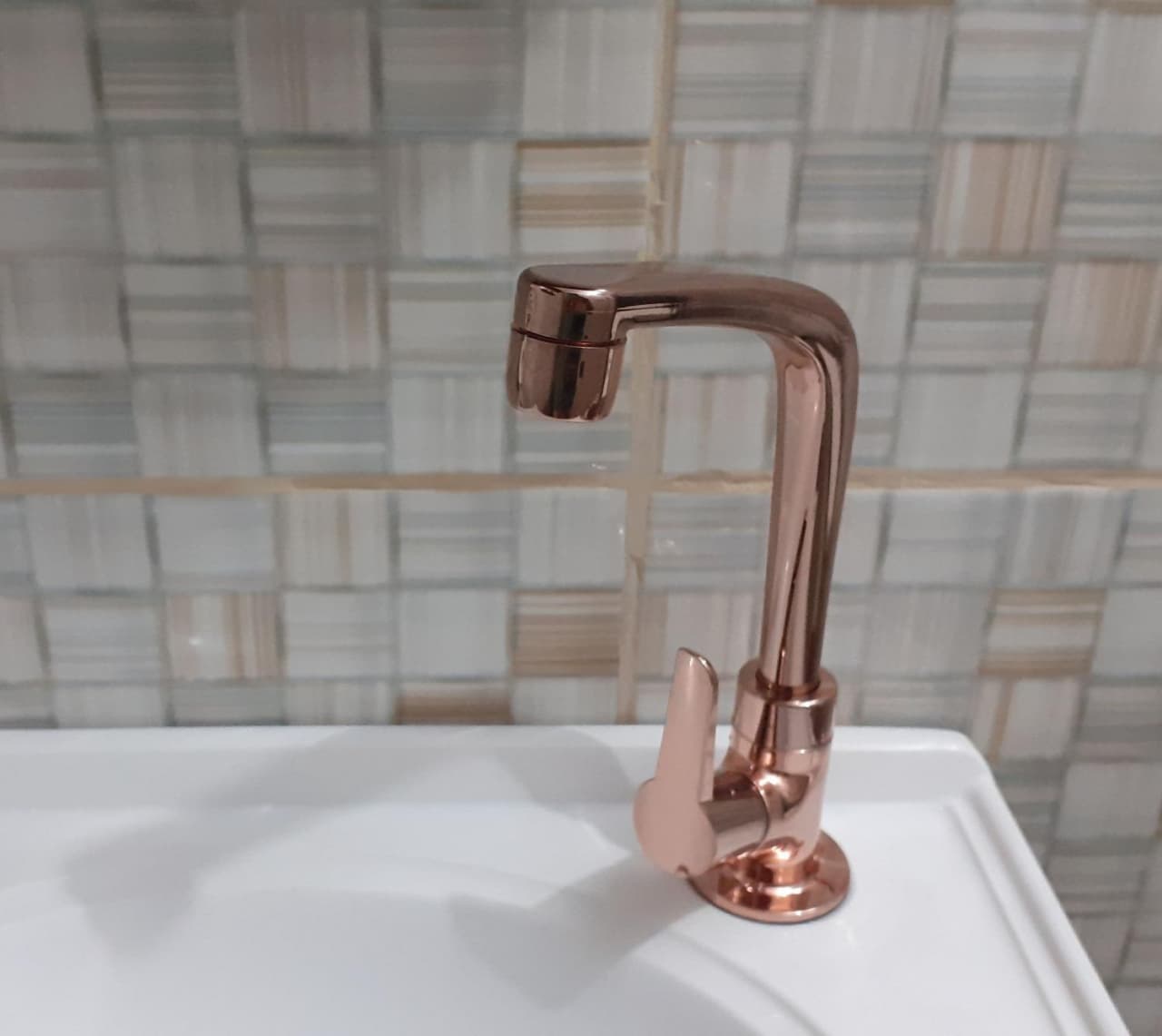 Torneira para Lavatório Mesa Bica Alta Rose Gold Flatt, Lorenzetti