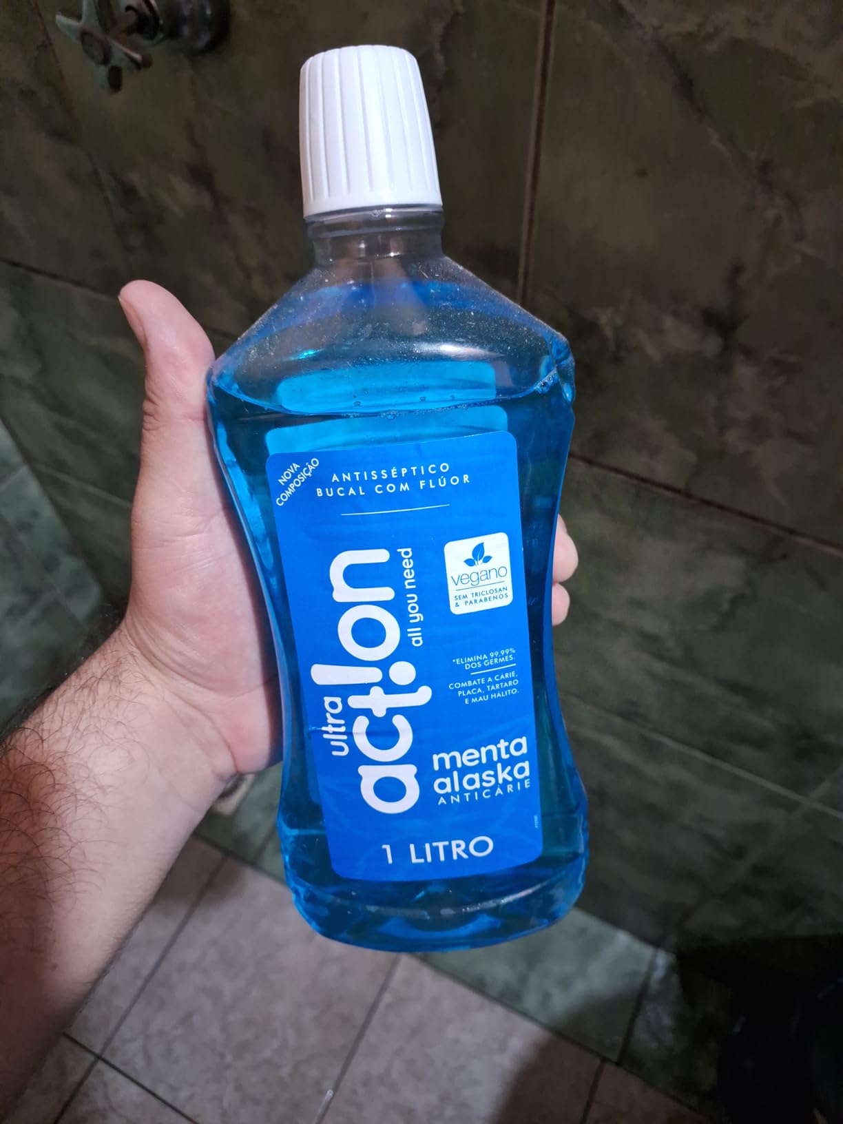 Enxaguante Bucal Menta Alaska, sem Triclosan, sem Parabeno, Previne Contra a Cárie, Hálito Saudável, Produto Vegano, Ultra Action, 1 L