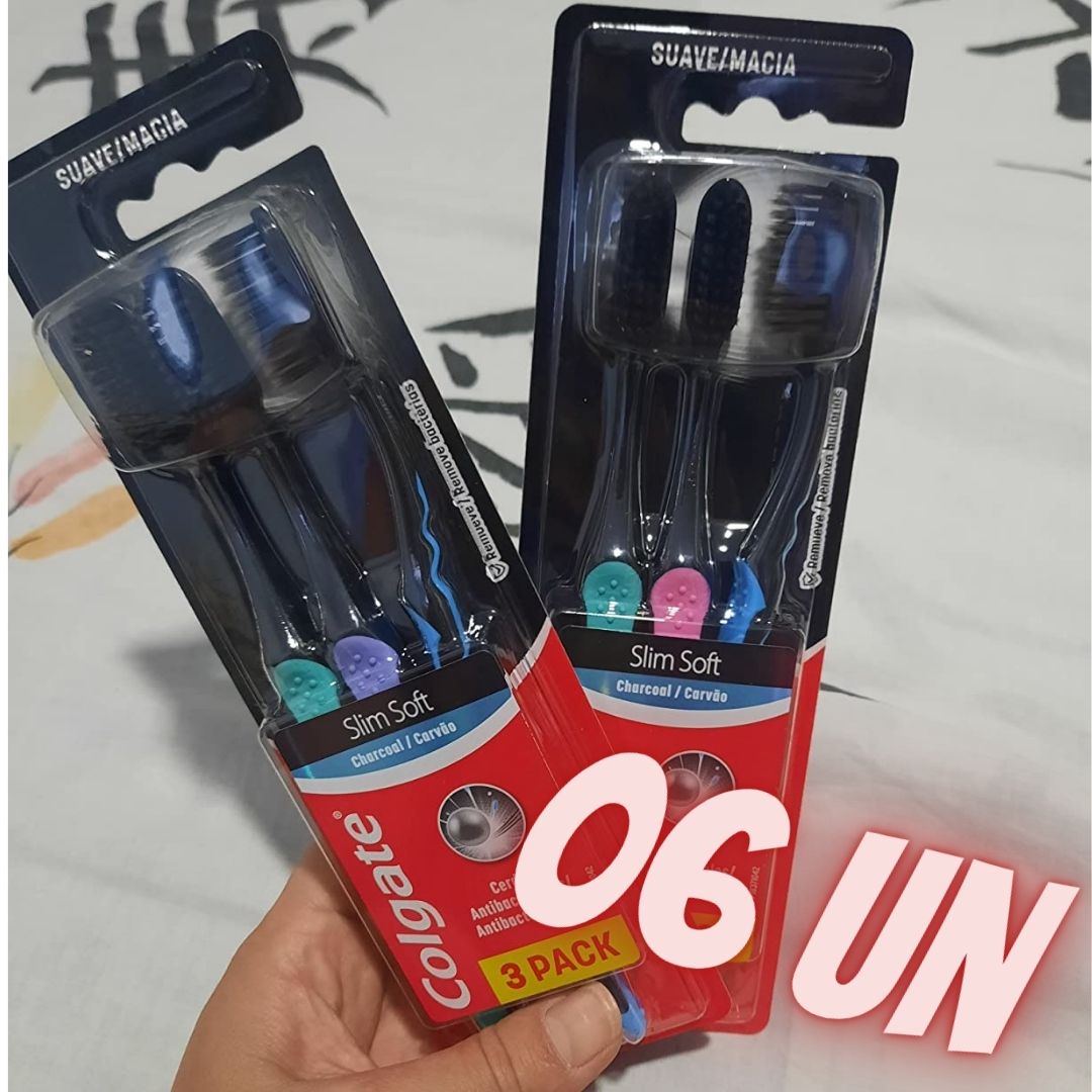 Escova de Dente Colgate Slim Soft Black 6 unid, Modelo: 61031393, Cor: Preto