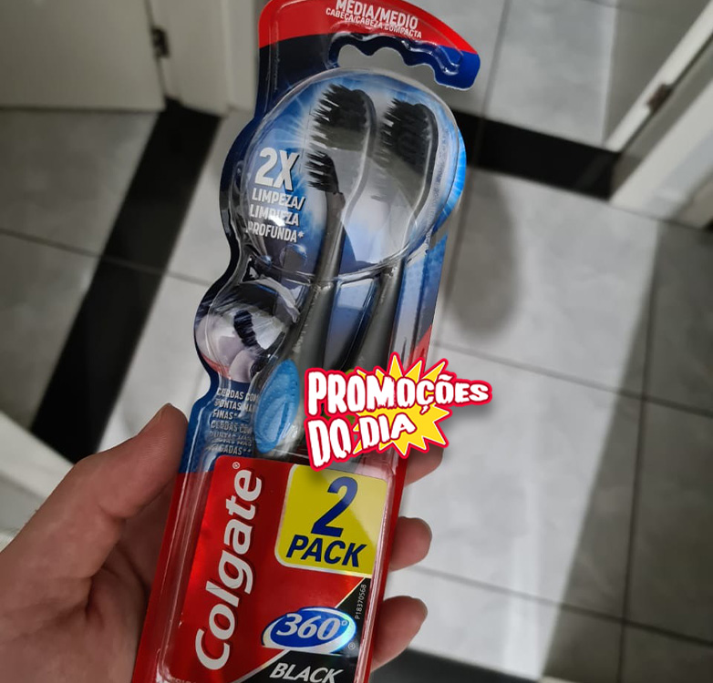 Escova Dental Colgate 360º Preto, Pacote com 2 unidades