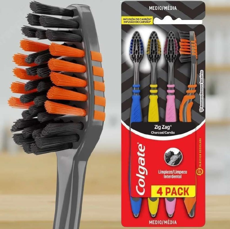 Escova Dental Colgate ZigZag Carvão, 4 unidades