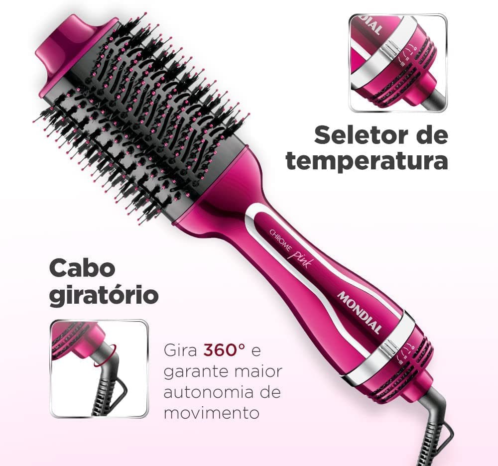 Escova Secadora, Mondial, 127V, 1200W, Chrome Pink – ES-04