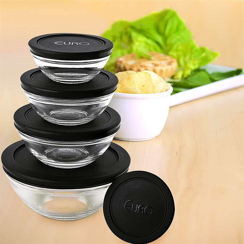 Euro Home VDR7090-PT – Conjunto com 5 potes de Vidro Redondos com Tampa Plástica, Preta