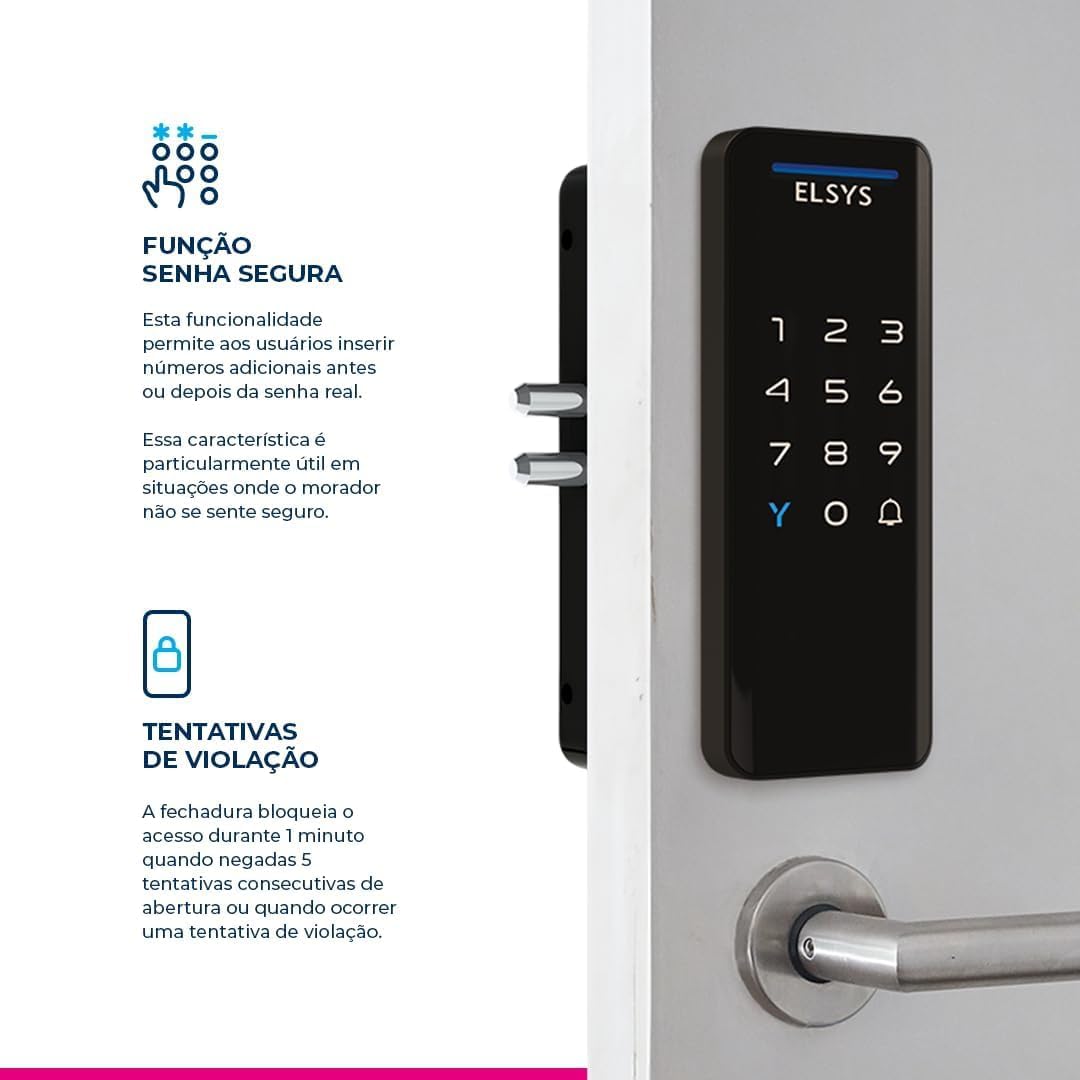 Fechadura Digital de Sobrepor, Abertura por senha ou tag, Pop, Preta, DS1100V, Elsys