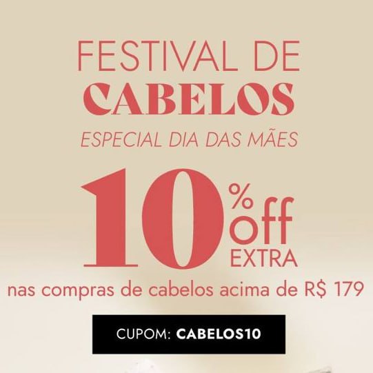 Festival de cabelos – Especial dia das mães | Ganhe 10% OFF + Frete grátis nas compras de cabelos acima de R$179