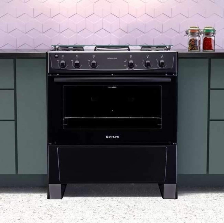 Fogão 5 Bocas Atlas Mônaco Plus Preto com Mesa Inox – Bivolt