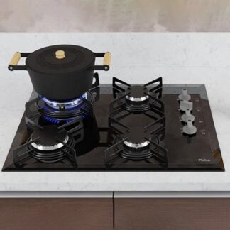 Fogão 5 Bocas Mesa de Vidro Esmaltec Preto – Acendimento Automático Caribe Glass