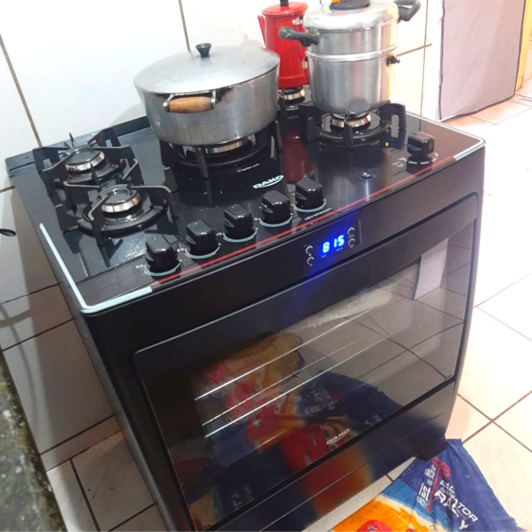 Fogão 5 Bocas Preto com Mesa de Vidro e Timer Digital Dako Supreme Black Glass Bivolt