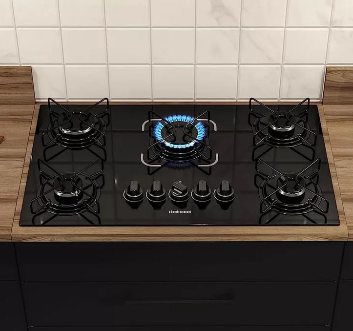 Cooktop com 5 queimadores ♨️ Superfície é de vidro temperado 😍