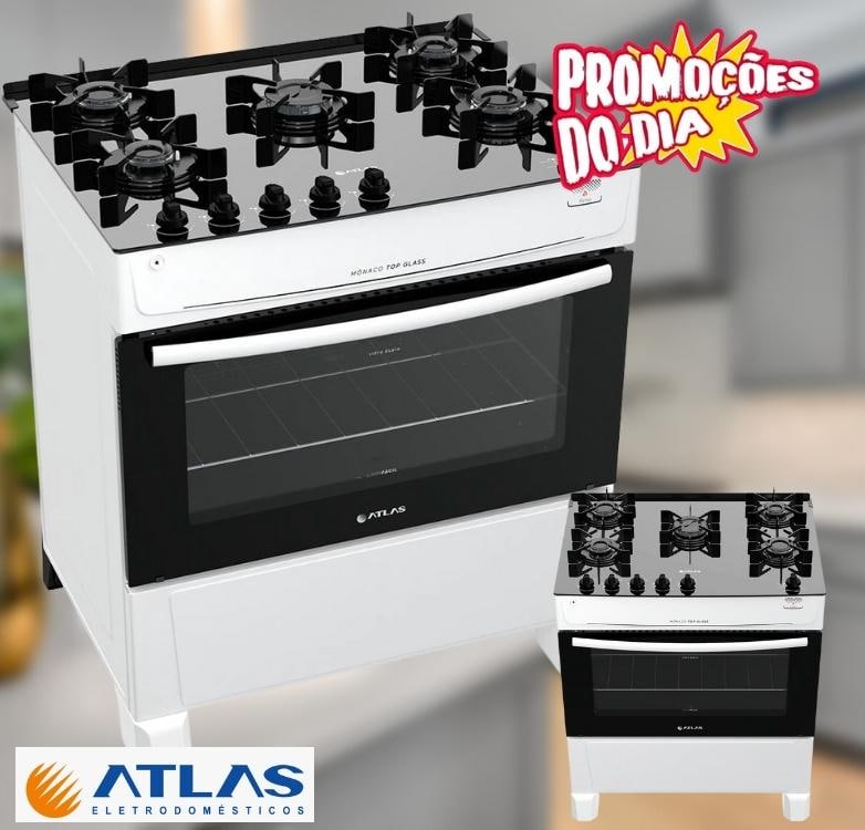 Fogão de Piso Atlas 5 Bocas Mesa Vidro Top Glass