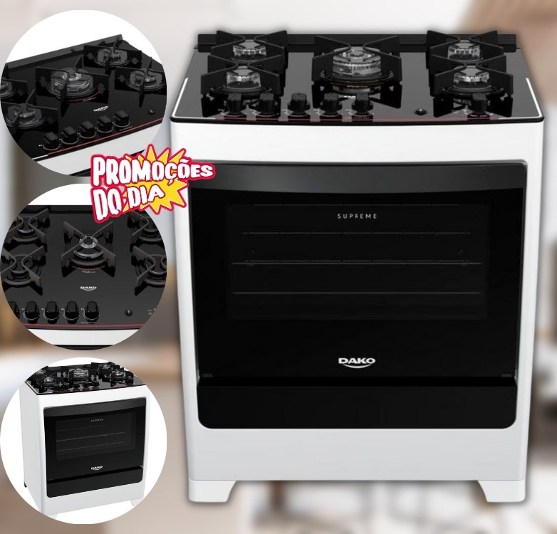 Fogão 5 Bocas Dako 🔝 Com Mesa de Vidro e Tripla Chama Branco ♨️