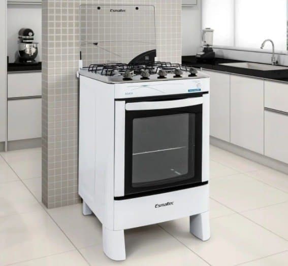 Fogão Esmaltec 4 Bocas Ágata 4062 com Mesa de Inox e Acendimento Automático Bivolt – Branco