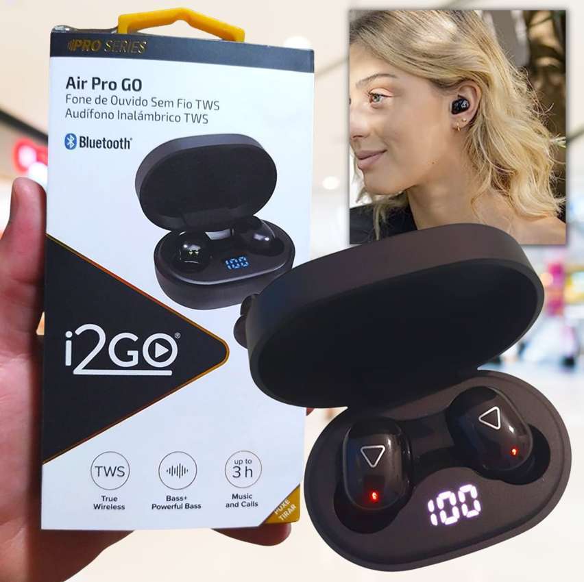Fone de Ouvido Bluetooth Sem Fio TWS Air PRO Go i2GO com Estojo de Carregamento – i2GO PRO