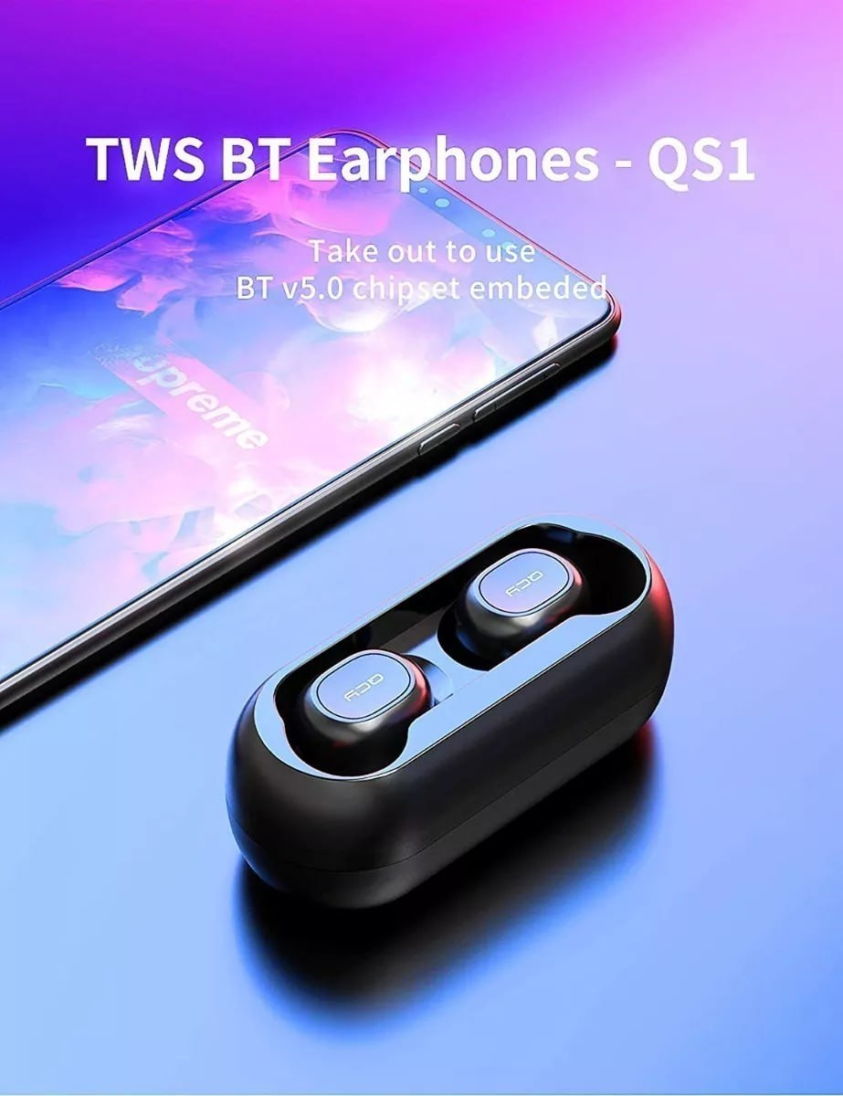 Fone De Ouvido Sem Fio Qcy T1c Tws Bluetooth 5.1 Case 380mah Cor Preto (grave reforçado)