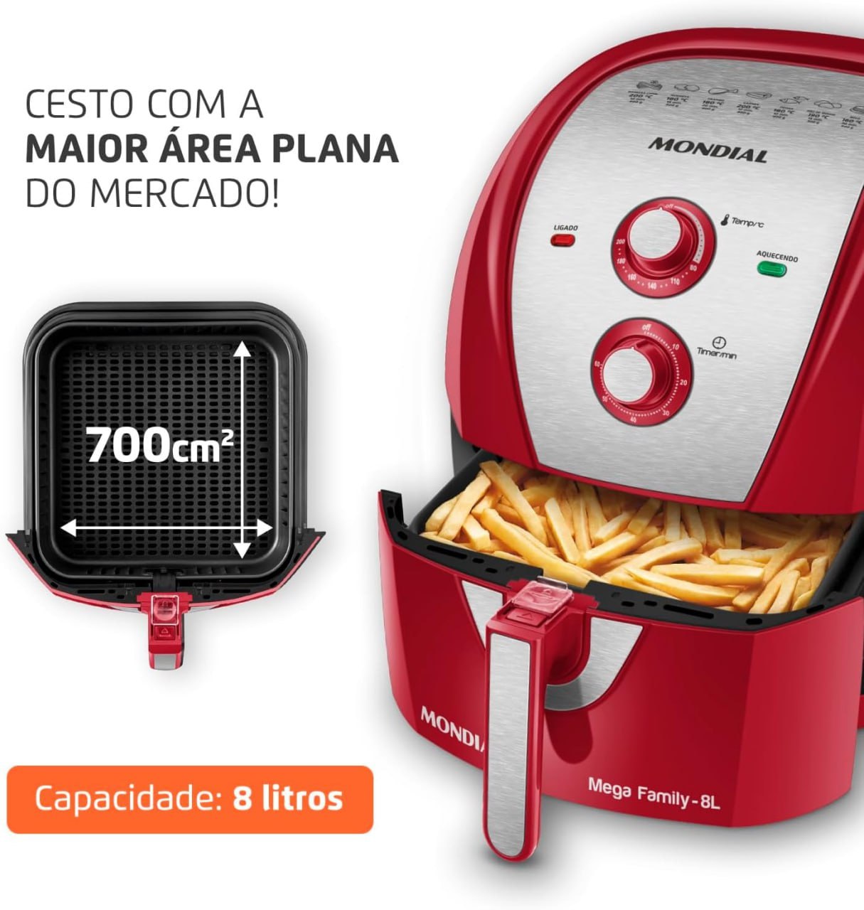 Fritadeira Sem Óleo Air Fryer 8L, Mondial, Vermelho/Inox, 1900W, 220V – AFN-80-RI