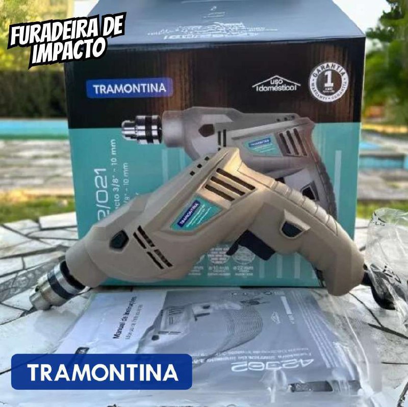 Furadeira De Impacto Com Sistema De Reversão De Rotação 500w 3/8 Cinza Tramontina 42362021 220v