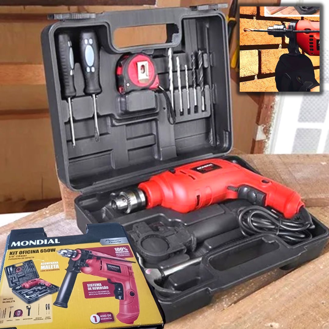 Furadeira de Impacto Mondial 650W 2 Velocidades – 3/8” com Maleta 11 Peças NFFI-07M