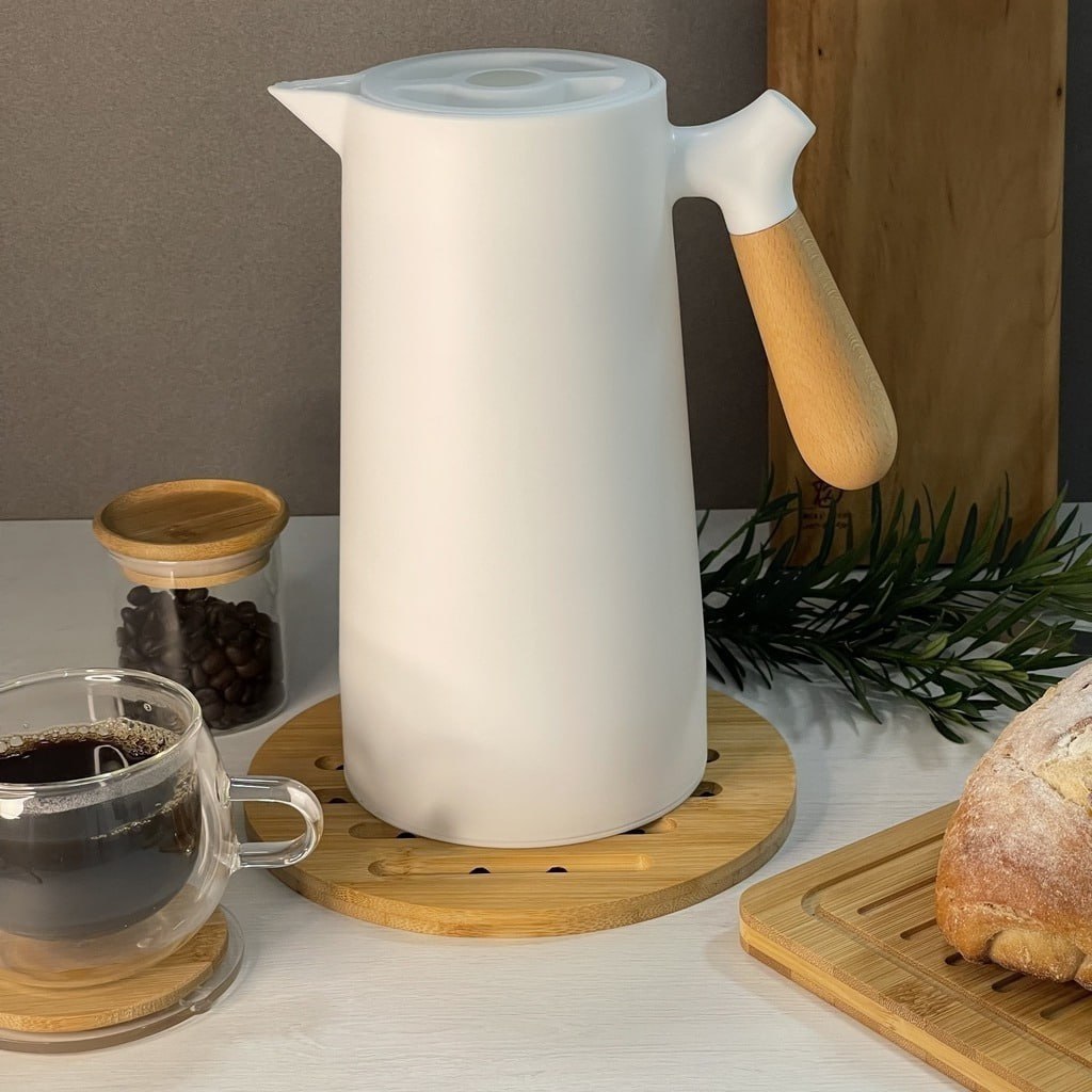 Garrafa Térmica Plástica com Cabo Madeira Wolff Nordica 1L Branca