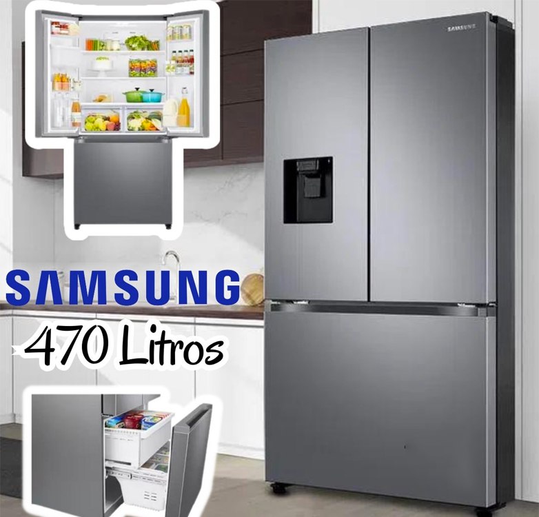 Geladeira Samsung RF49A Inverter Frost Free 3 Portas com Dispenser de Água 470L Inox Look