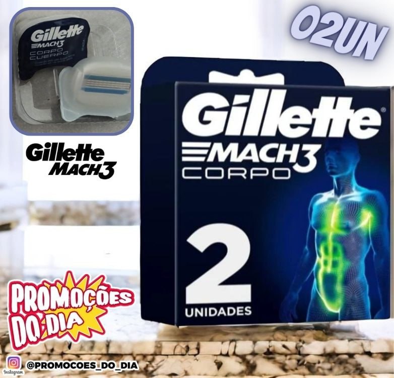 Gillette Mach3 Corpo Carga para Aparelho de Barbear com Barras de Gel Umectantes, Depilação Corporal para Homens, 2 Uds