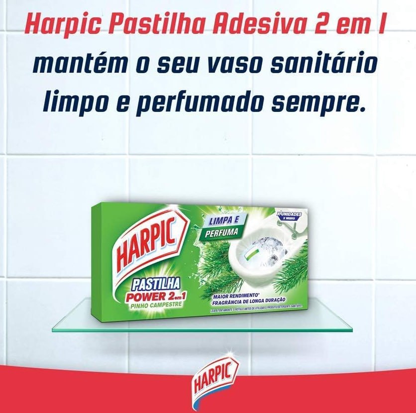 Harpic Limpador e Aromatizador Sanitário Pastilha Adesiva Power 2 em 1 Pinho 3 unidades – Leve 3 Pague 2