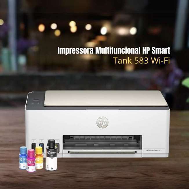 Impressora Multifuncional HP Smart Tank 583 Tanque de Tinta Colorida Wi-Fi
