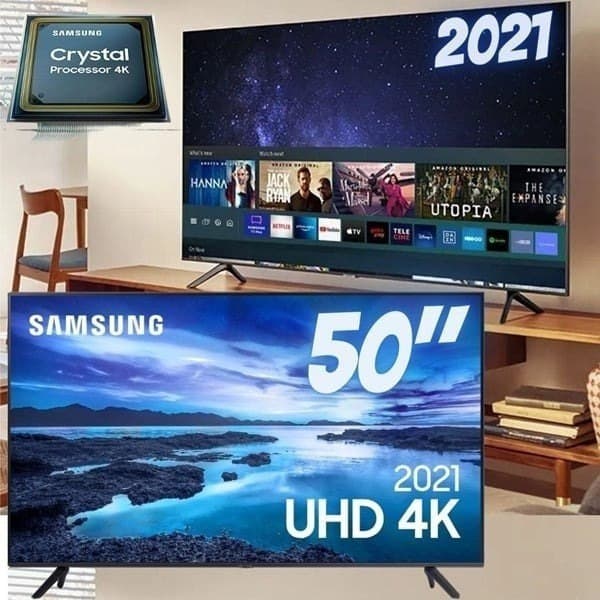 Smart TV Samsung 50″ UHD Processador Crystal 4K 50AU7700 Tela Sem Limites Visual Livre de Cabos
