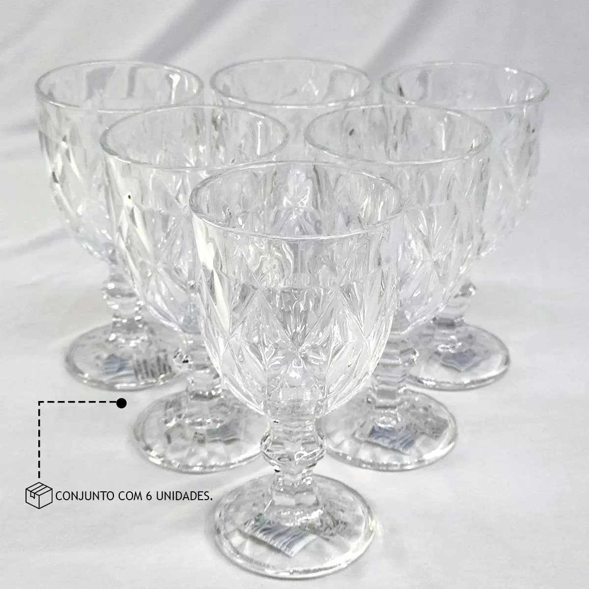 Jogo C/ 6 Taças Vidro Diamond Transparente – Treelar