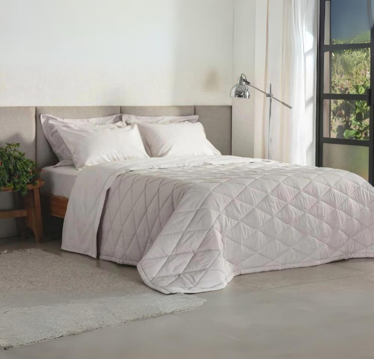 Jogo de Cama Casal 180 Fios Basic Percalle Cinza Buddemeyer