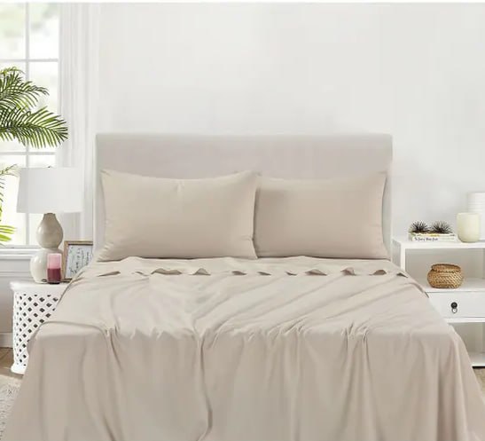 Jogo de Cama Casal de Poliéster Jolitex 300 Fios Toque de Seda Bege 3 Peças