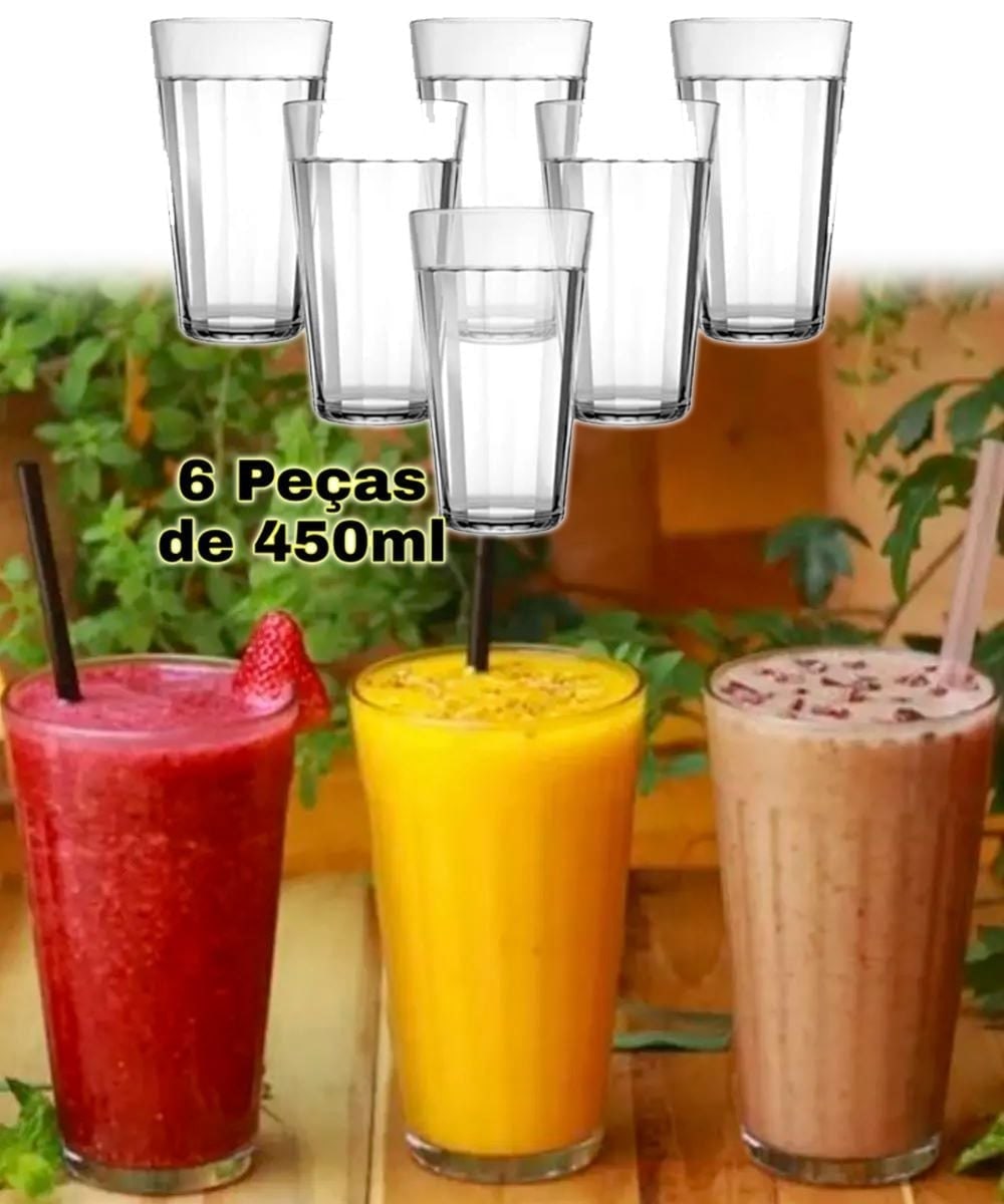 Jogo de Copos de Vidro 450ml – 6 Peças Americano