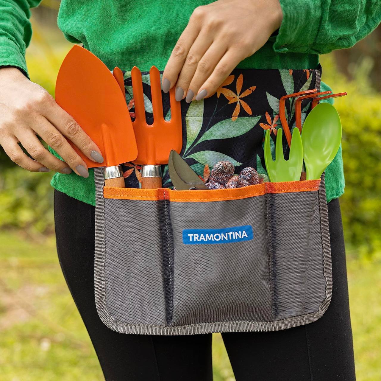 Jogo de Ferramentas P/ Jardim Tramontina C/ Cinto 8 Pç Cinza