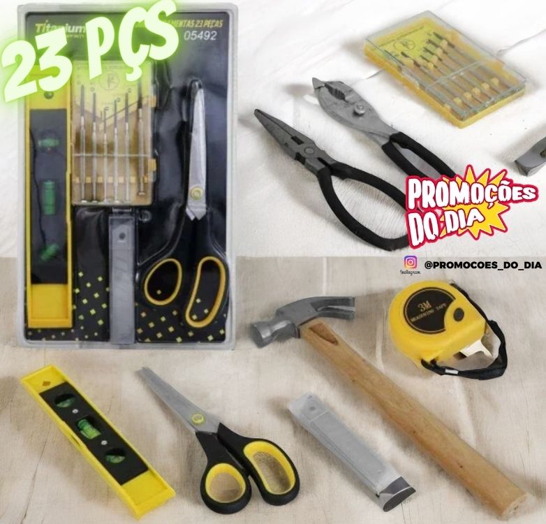 Jogo de Ferramentas Titanium 23 Peças em Aço Carbono Preto e Amarelo