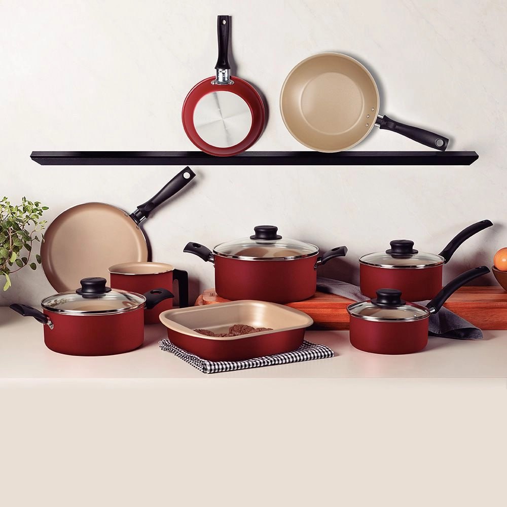 Jogo de Panelas Tramontina Turim Antiaderente 9 Peças – Vermelho