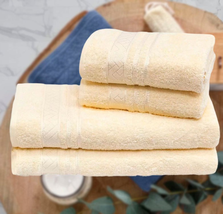 Jogo de Toalhas de Banho Dohler Jacquard Premium Banho Felpudo Creme 4 Peças