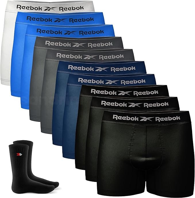 Kit 10 Cuecas Boxer Reebok Masculinas Microfibra Adulto Box Sem Costura + 2 Meias