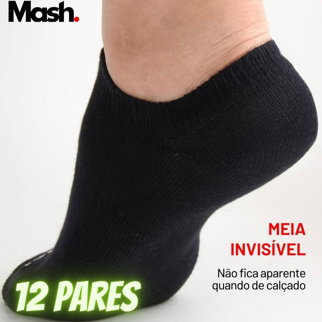 Kit 12 Pares Meia Invisível Mash Unissex Esportiva Active Algodão Sapatilha Cano Curto