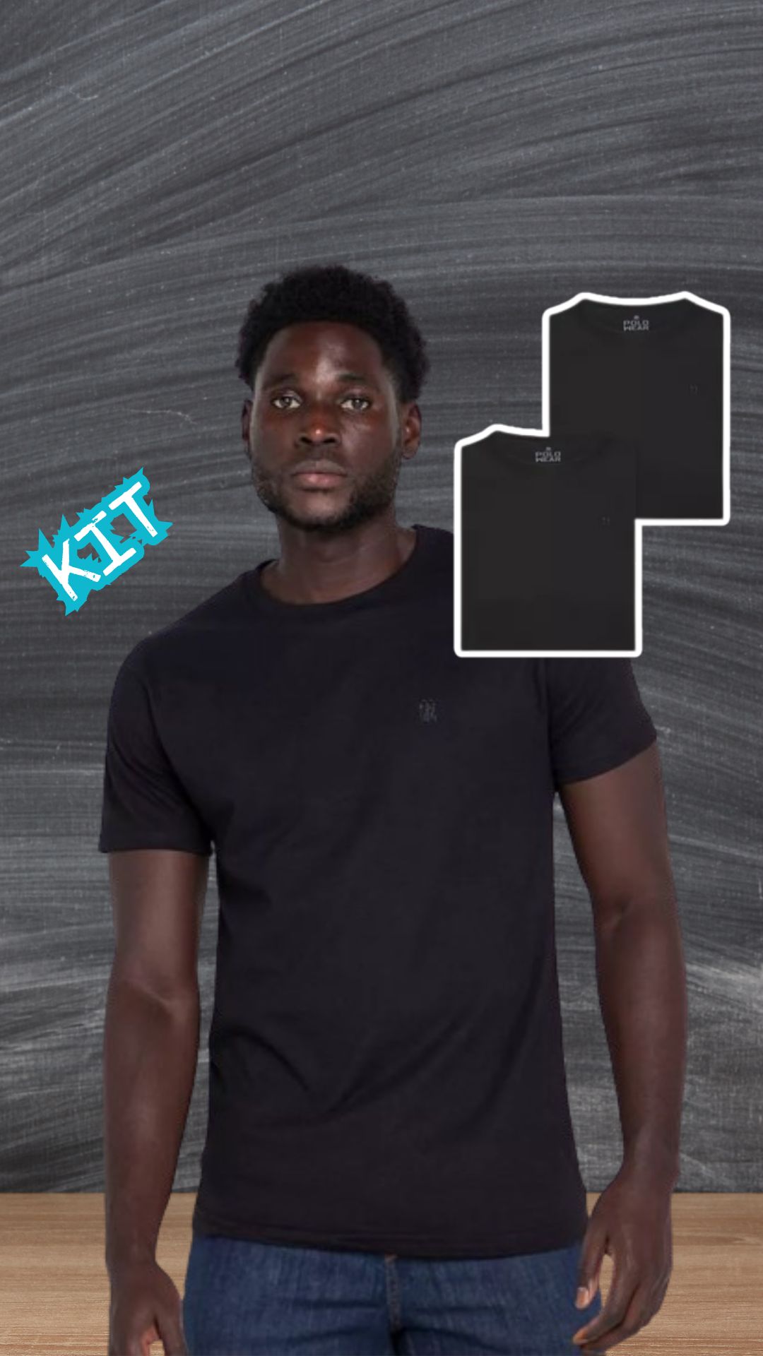 Kit 2 Camisetas Masculinas Pretas Básicas Polo Wear Preto