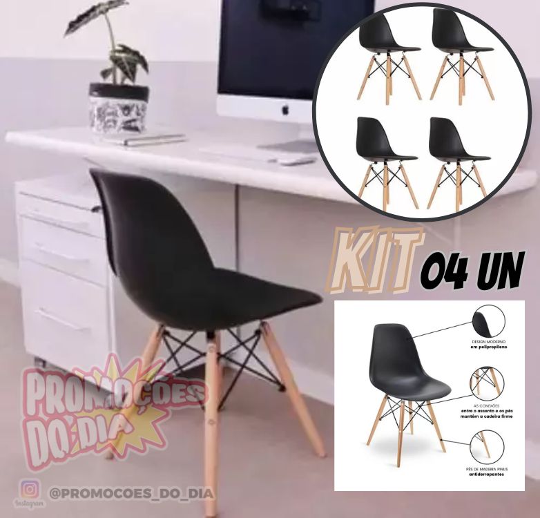 Kit 4 Cadeiras Eames Eiffel Preto – Xplast