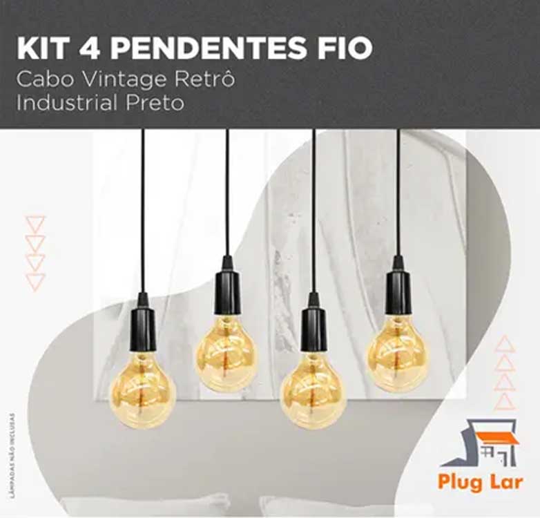 Kit 4 Pendente Fio Cabo Vintage Retrô Industrial Preto – Plug Lar