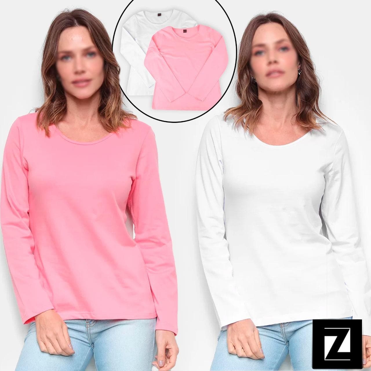 Kit Blusa Básicos Manga Longa C/ 2 Peças Feminina