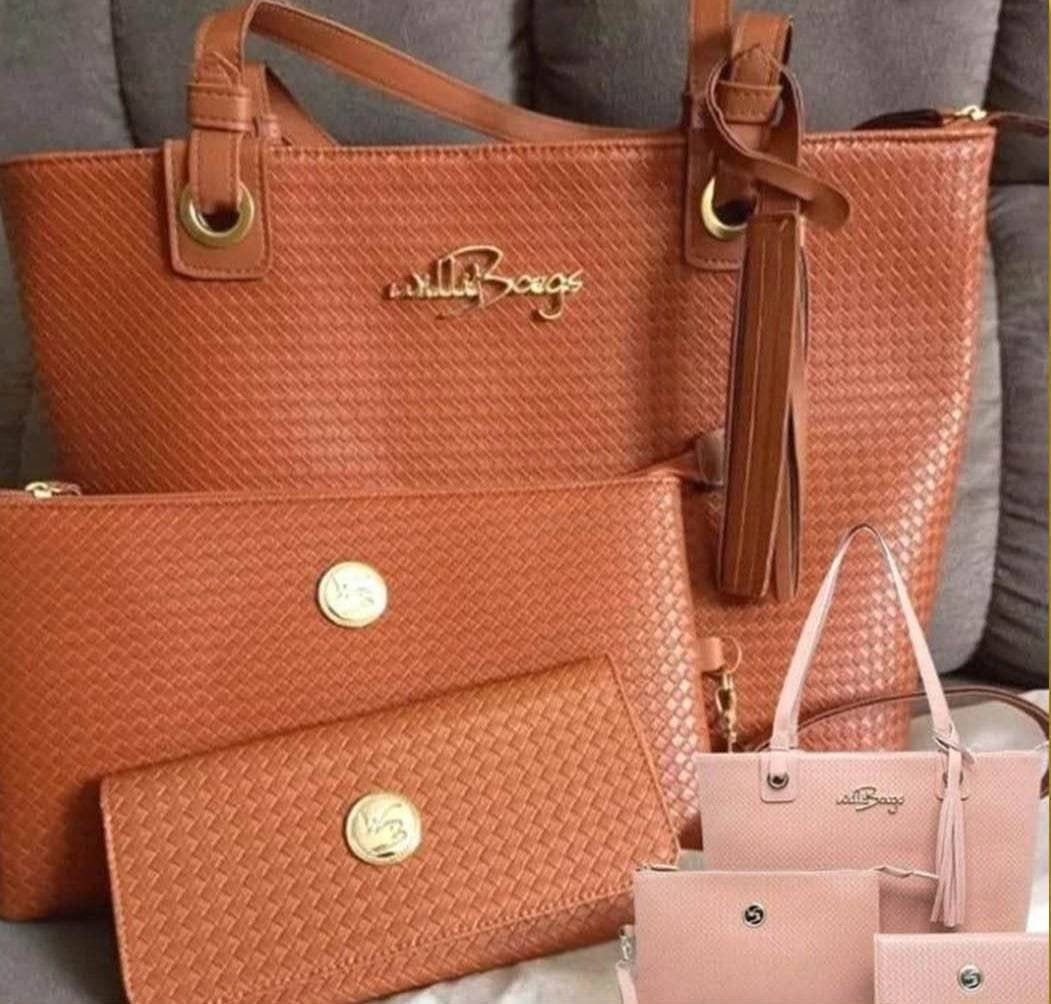 Kit Bolsa Feminina Tipo Sacola + Necessaire + Carteira Willibags
