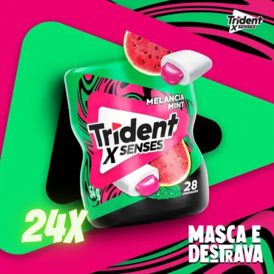 Kit Chiclete Trident X Senses Melância – Display de Garrafa 12 Unidades de 54g