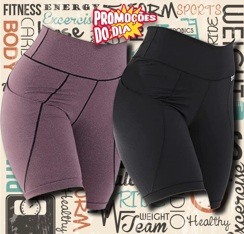 Kit com 02 Bermudas Fitness Bolso Play Click Mais Bonita